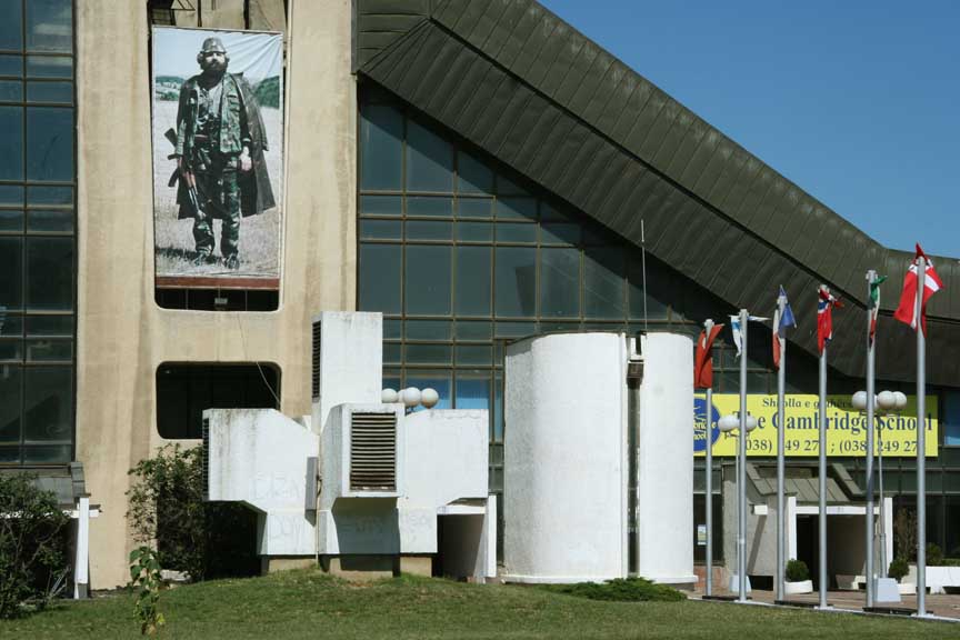 | Eingang zur privaten Englischschule | HIntergrund UNMIK - Hauptquartier | UNMIK-Hauptuartier |